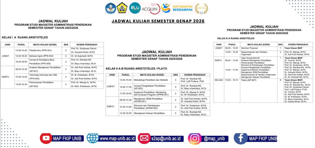 Program Studi Magister Administrasi Pendidikan telah menyelenggarakan kegiatan Sosialisasi Mahasiswa Baru Semester Genap Tahun Akademik 2024/2025 pada Rabu, 18 Desember 2025. Kegiatan ini bertujuan untuk memberikan pemahaman awal kepada mahasiswa baru mengenai sistem penyelenggaraan pendidikan, kebijakan akademik, serta kultur akademik Read More …